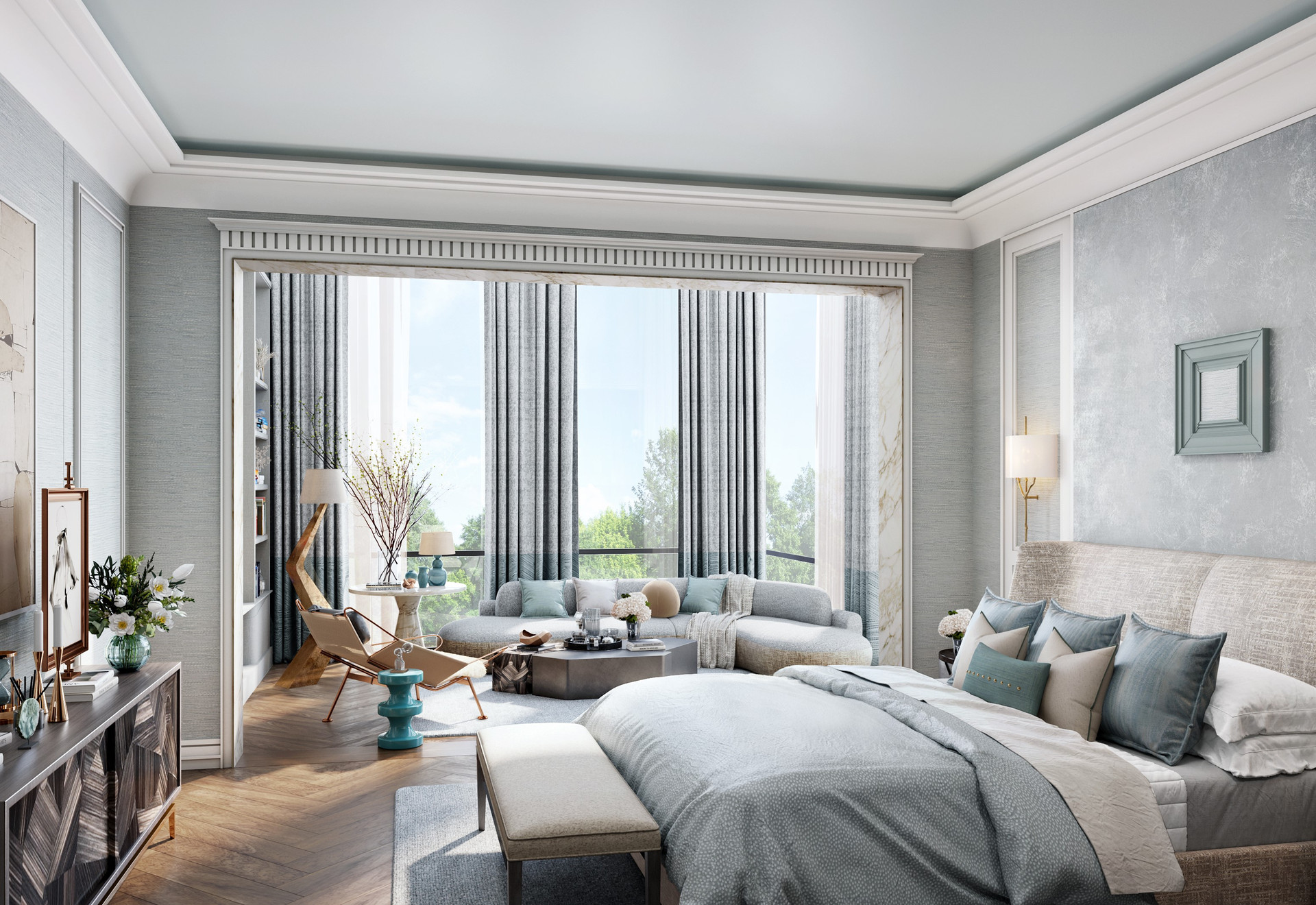 Luxe, Private residence in Bangkok. Driven by a harmonious blend of classic and contemporary elements, the sanctuary integrates natural influences to create a refined and immersive atmosphere. Luxurious wallcoverings and richly layered textures evoke both timeless elegance and a sense of organic warmth, resulting in a space that feels curated, grounded, and exquisitely inviting.